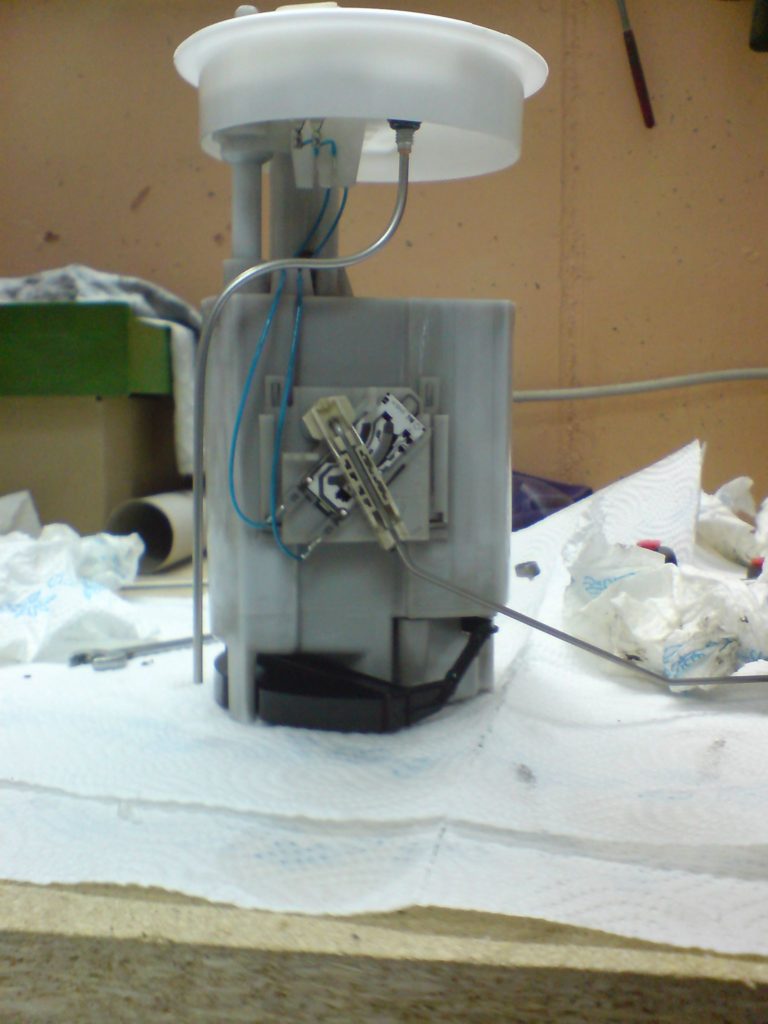Außerdem muss eine Dieselentnahmeleitung im Tank installiert werden, dazu muss die Tankentnahmeeinheit ausgebaut werden. An diese Kunststoffeinheit gelangt man, in dem man die hinteren Sitze ausbaut und den Teppich zur Seite schlägt. Die Tankentnahmeeinheit enthält einen Poti um den Kraftstoffstand zu ermitteln, sowie Vor- und Rücklauf für den Kraftstoff zum Motor, interessanterweise besitzt der ATL Motor keine im Tank sitzende elektrische Kraftstoffpumpe.